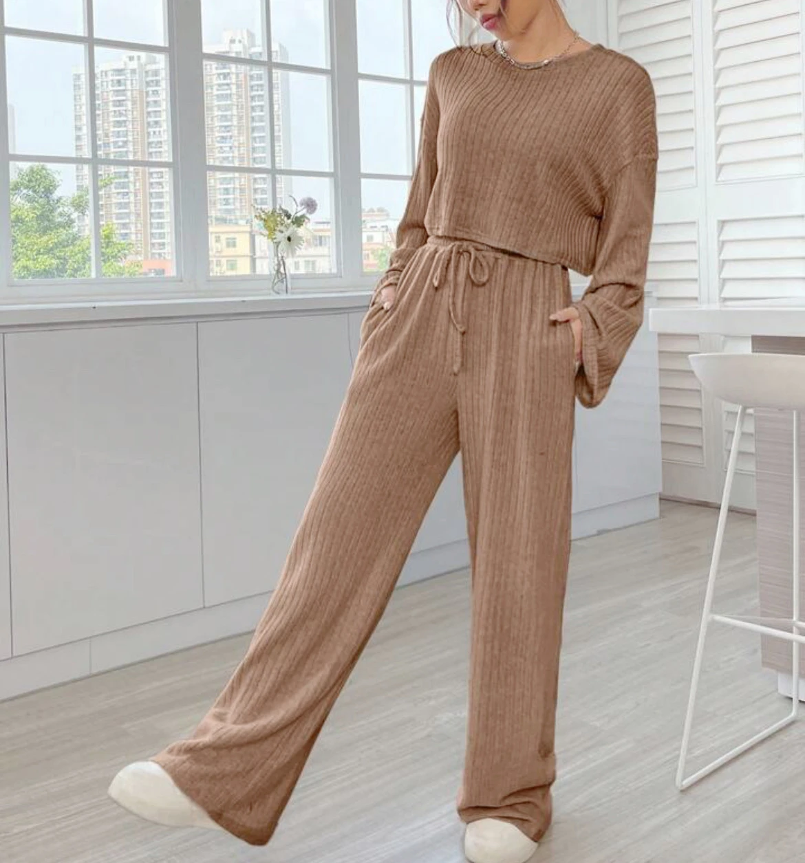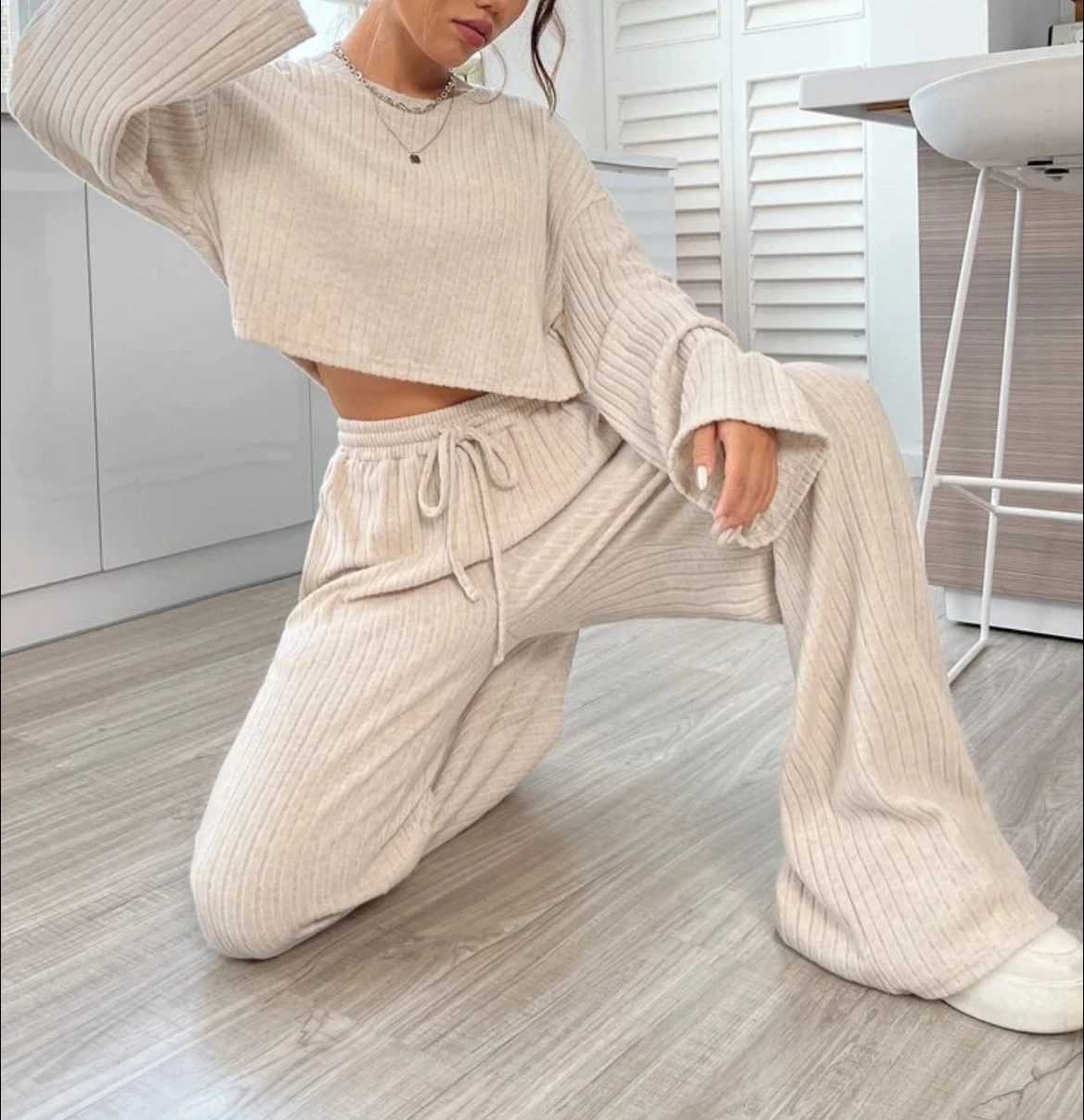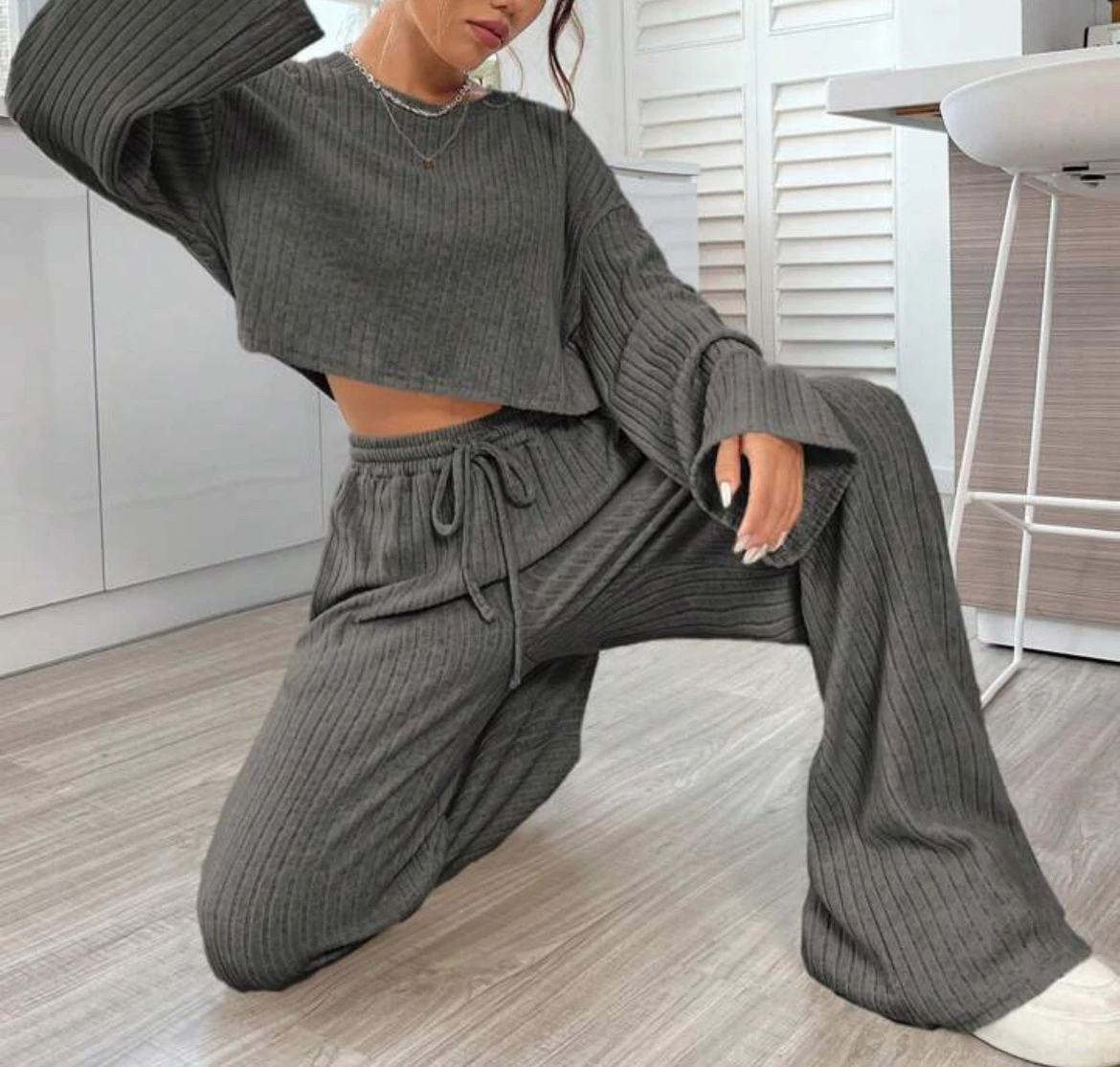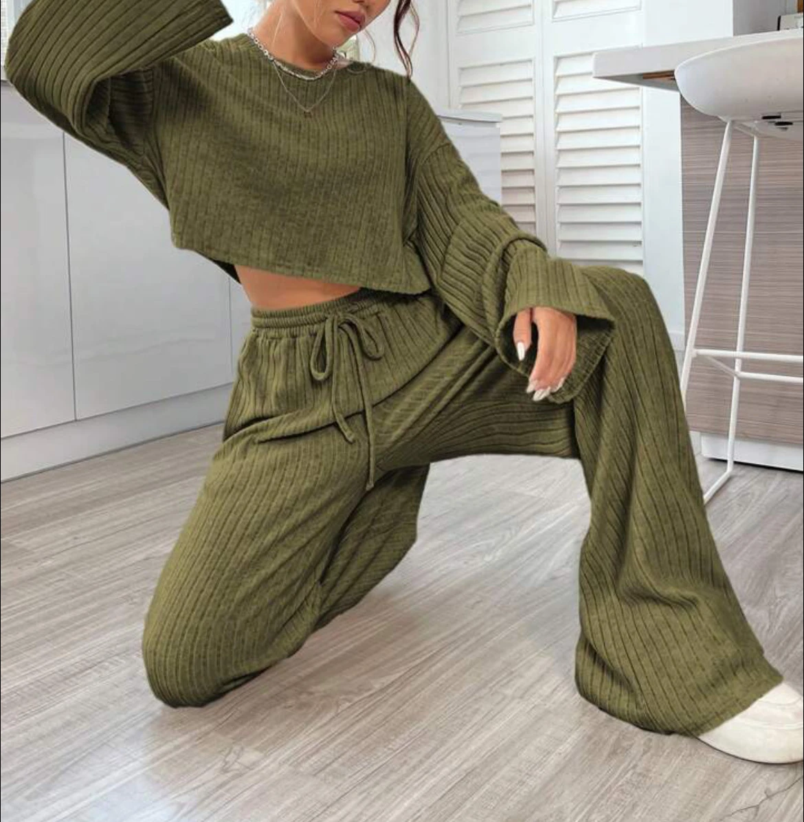 Casual Homewear Knitted Long Sleeve Women's Suit