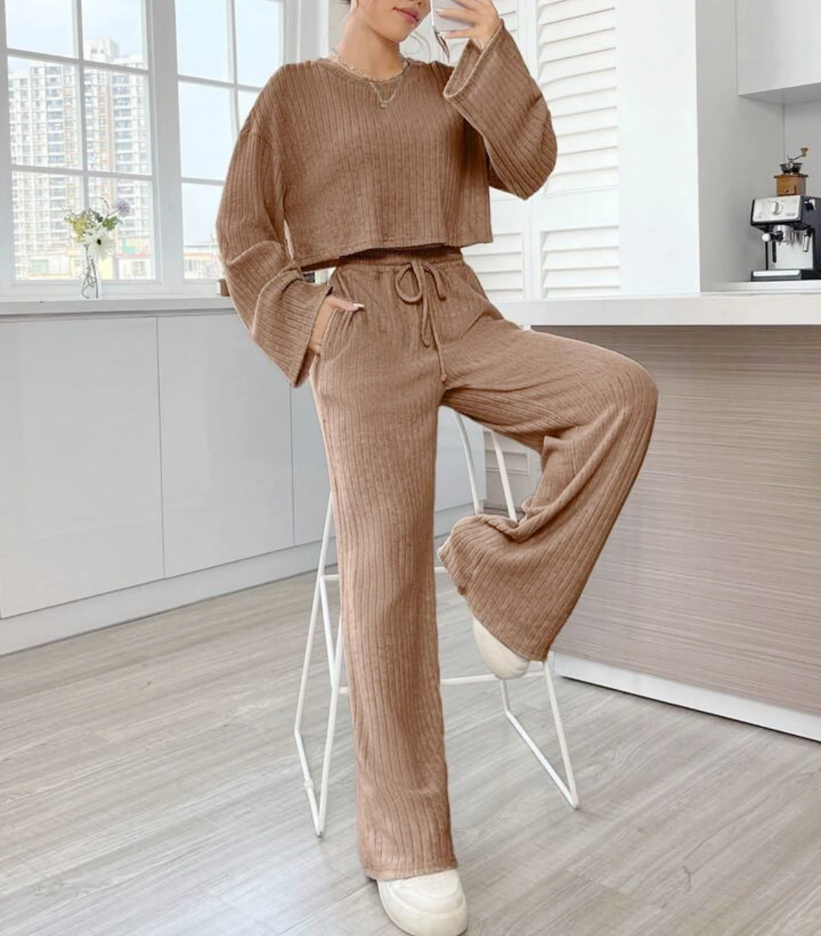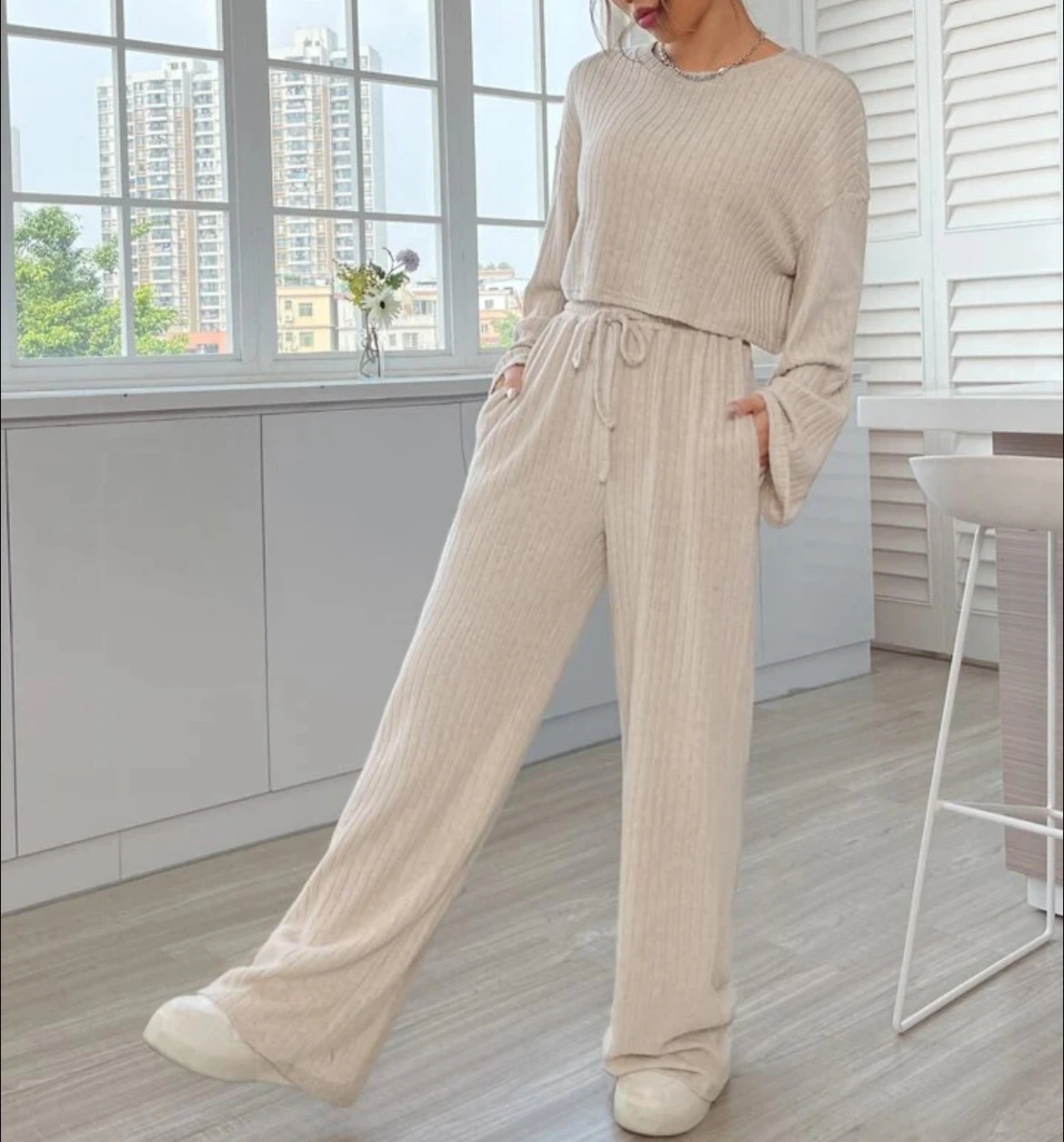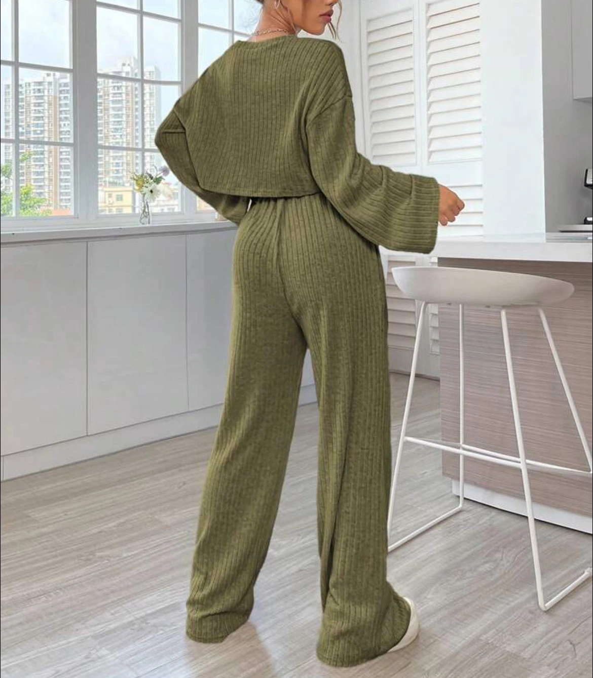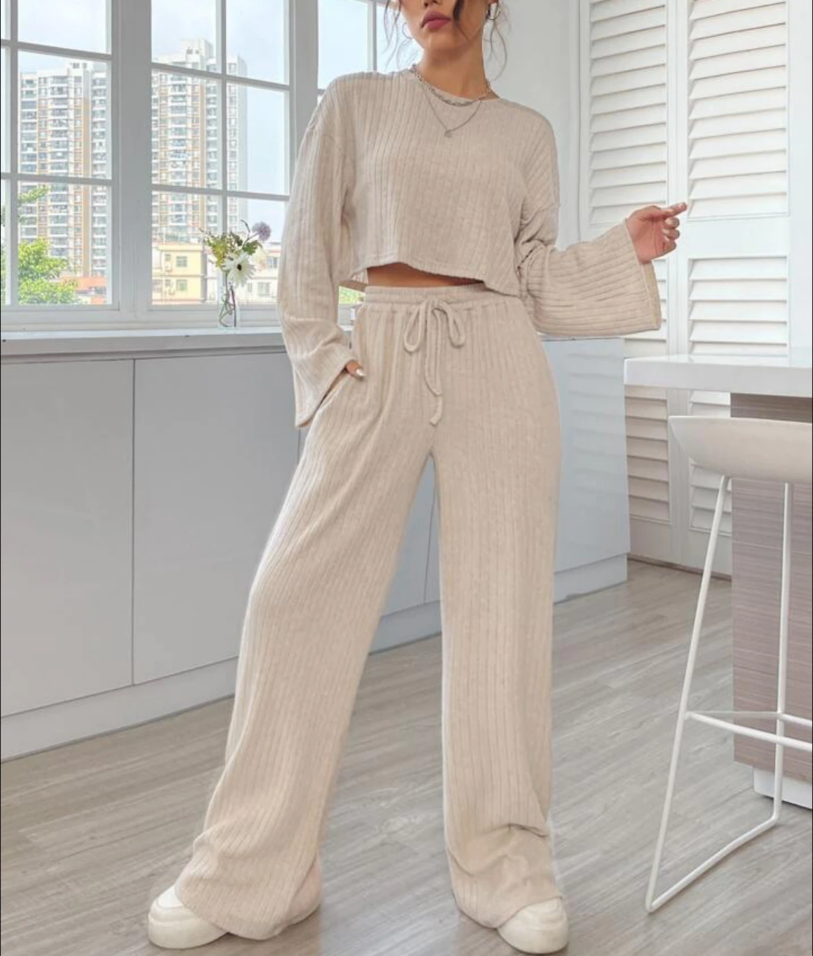 Casual Homewear Knitted Long Sleeve Women's Suit