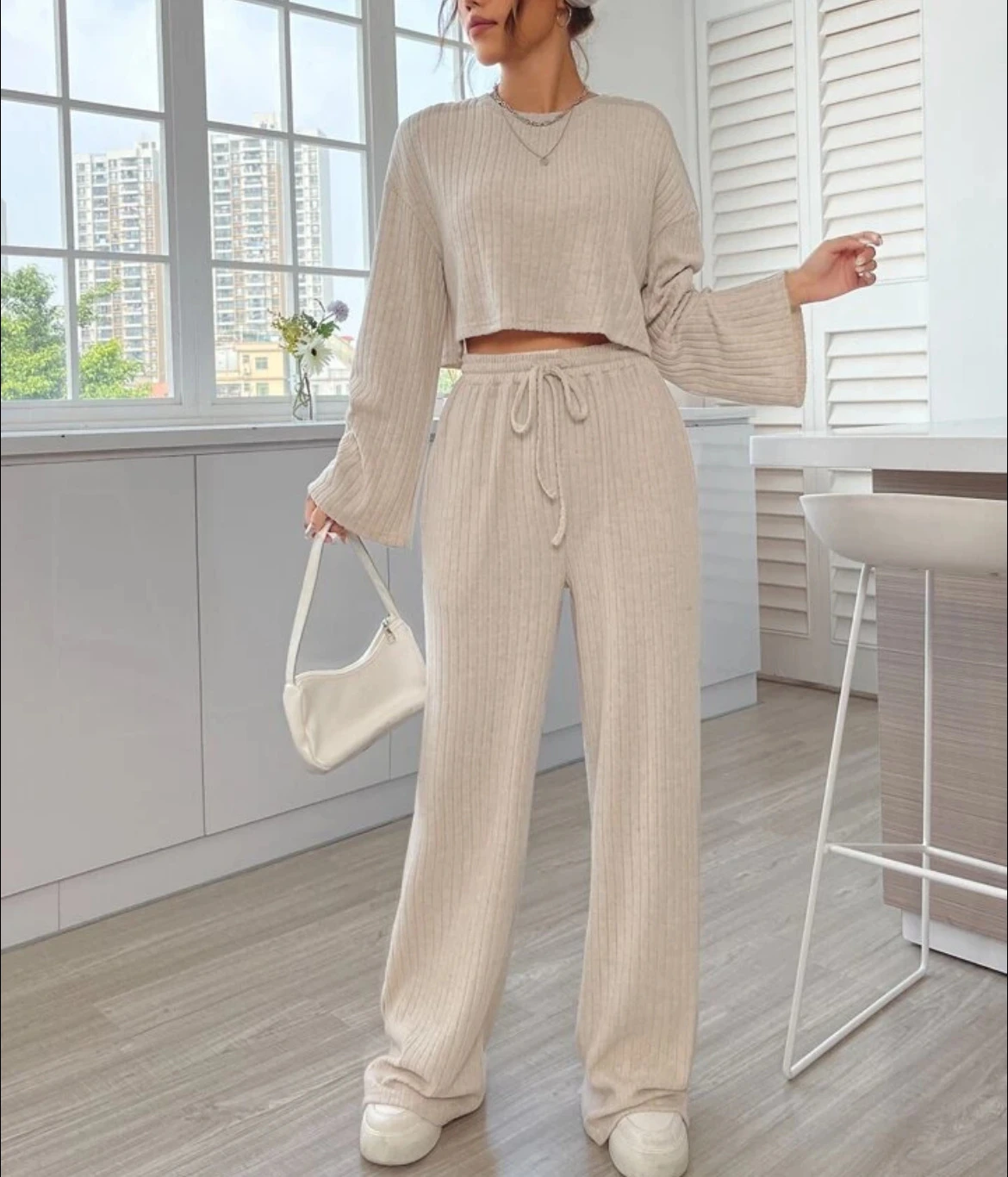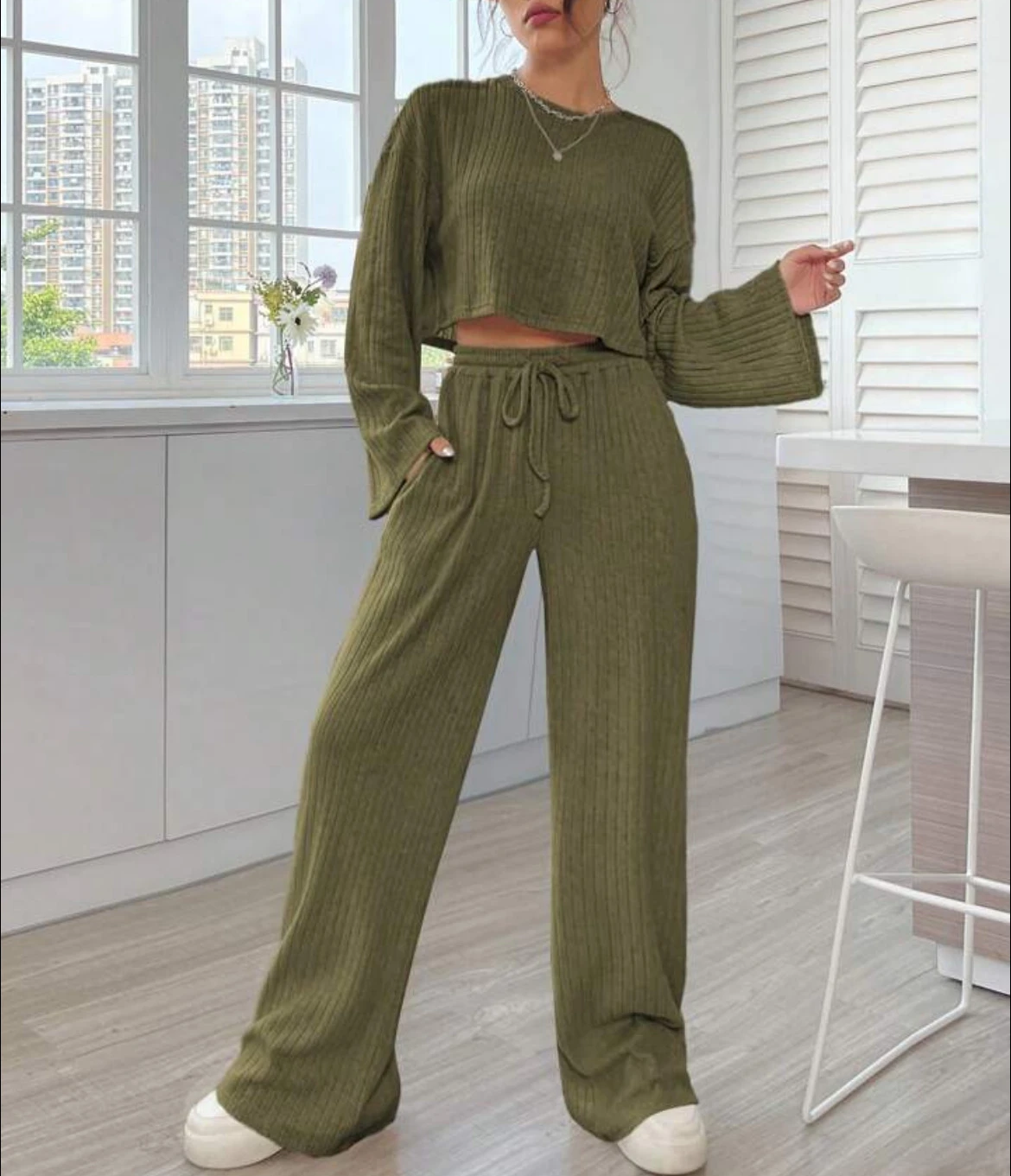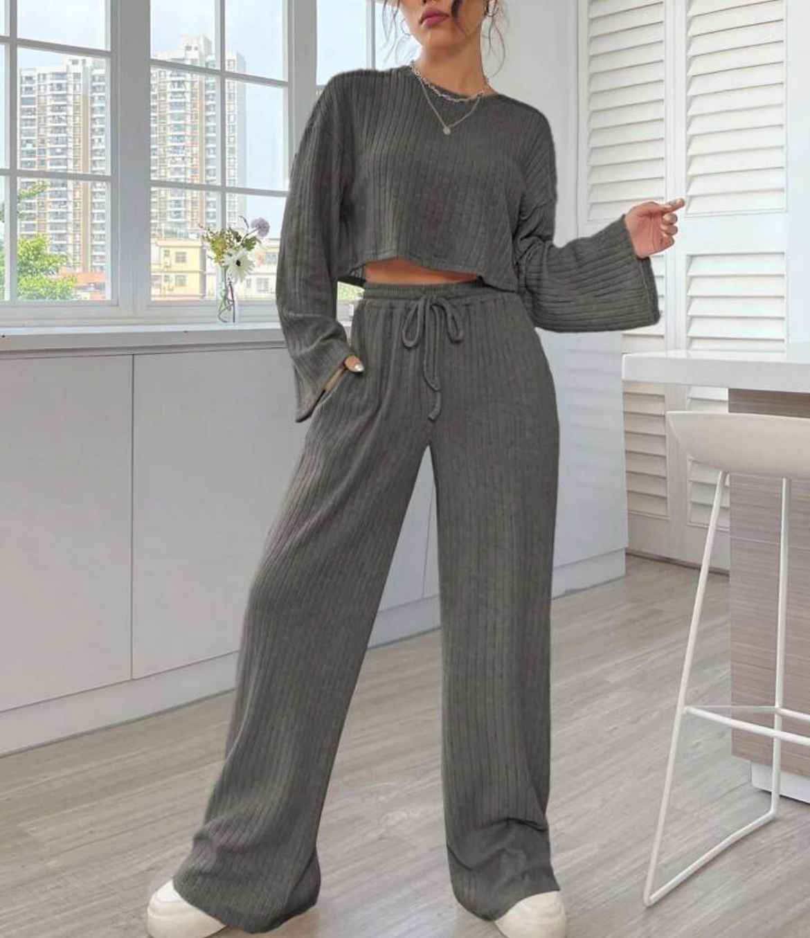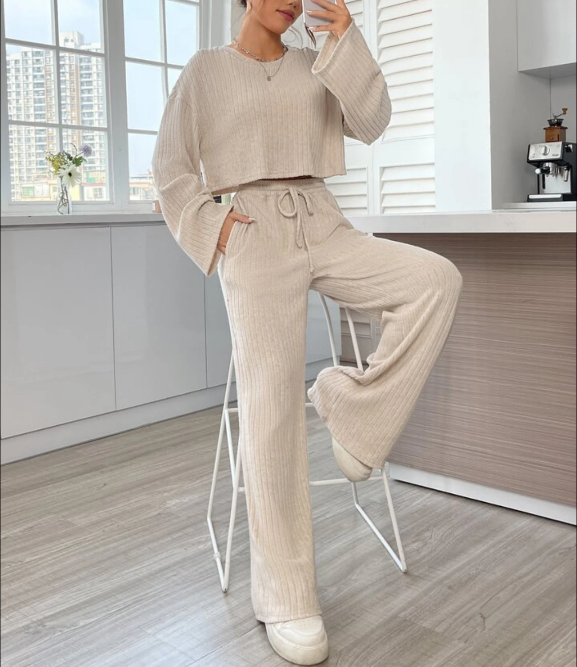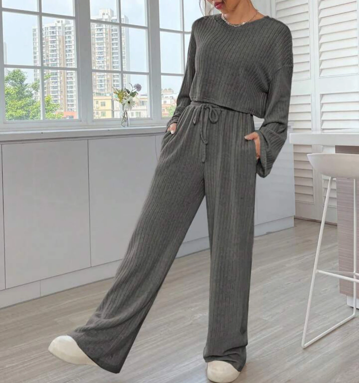 Casual Homewear Knitted Long Sleeve Women's Suit