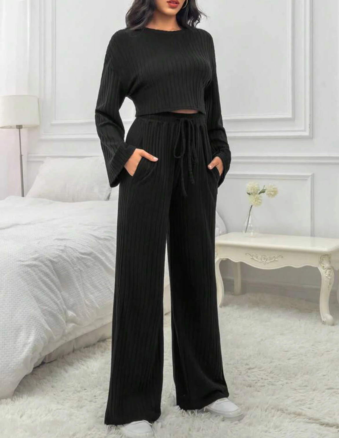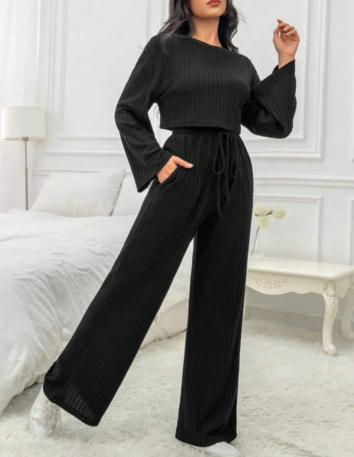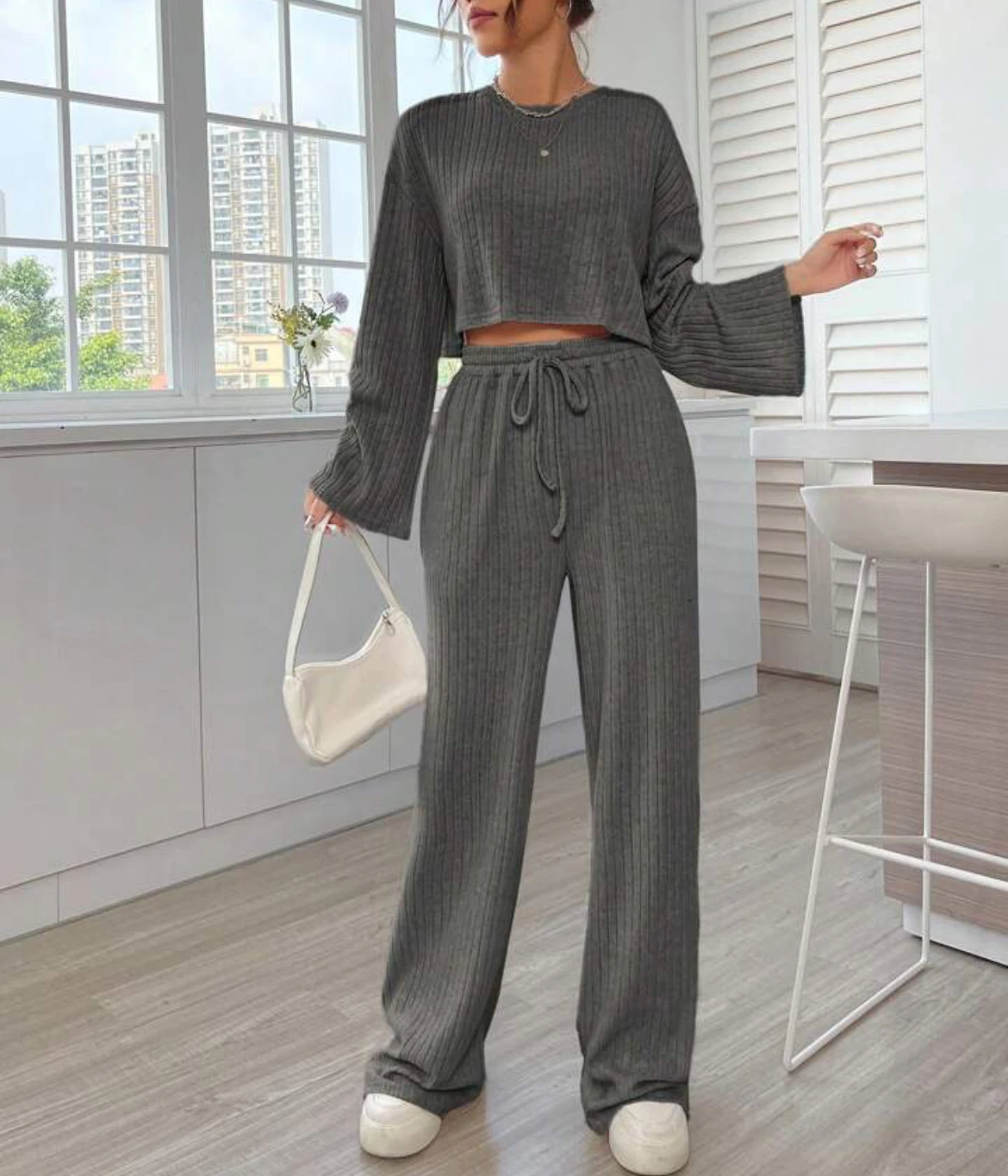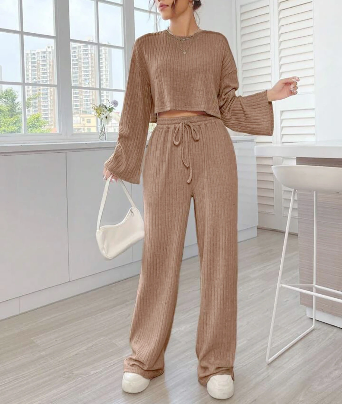 Casual Homewear Knitted Long Sleeve Women's Suit