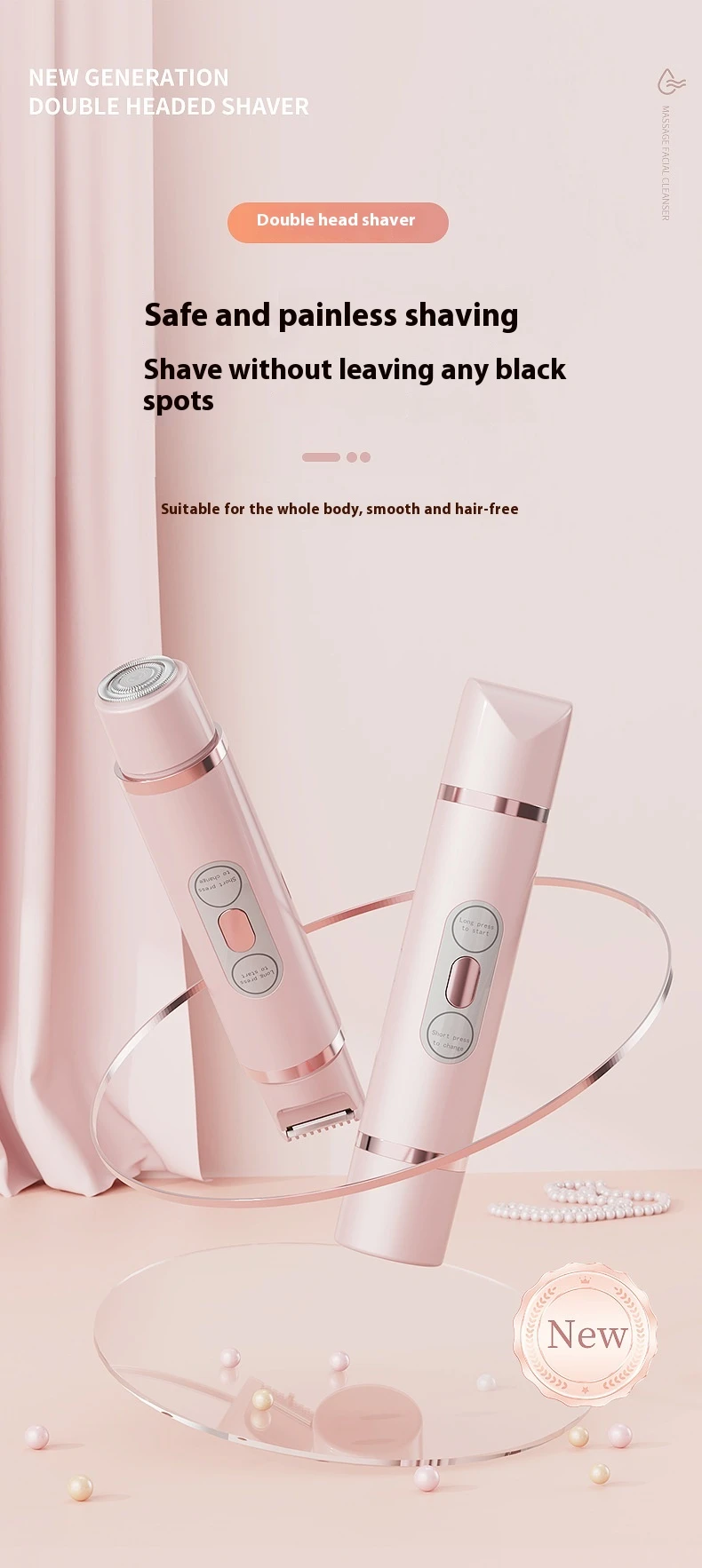 Dual-Head Electric Shaver Painless Women's Epilator Bikini Hair Removal Device Automatic Hair Trimmer Underarm Facial Lips Leg