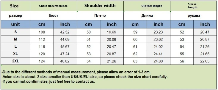 1. Asian sizes are 1 to 2 sizes smaller than European and American people. Choose the larger size if your size between two sizes. Please allow 2-3cm differences due to manual measurement.