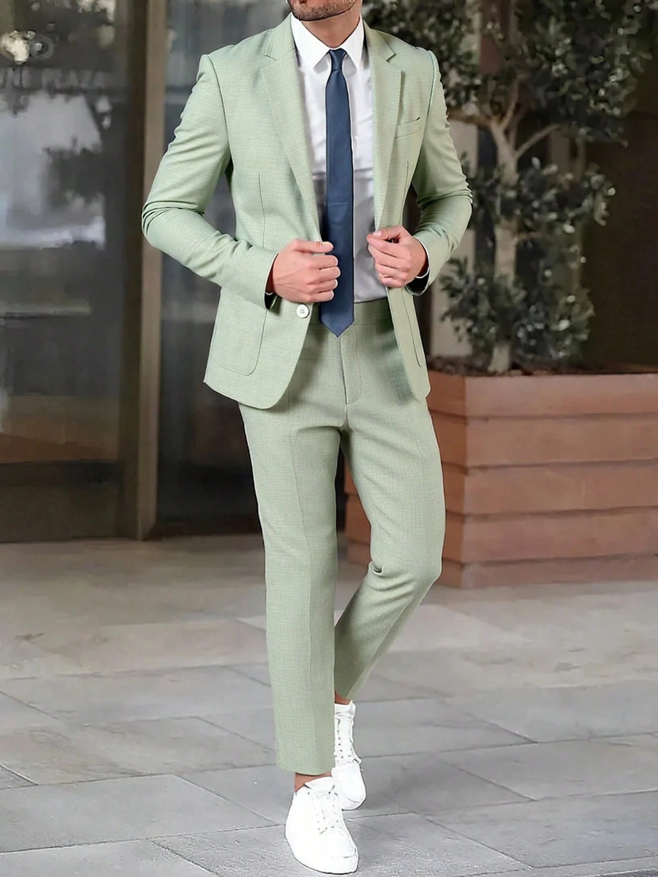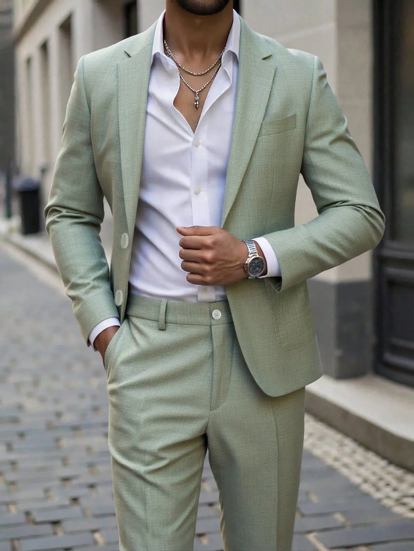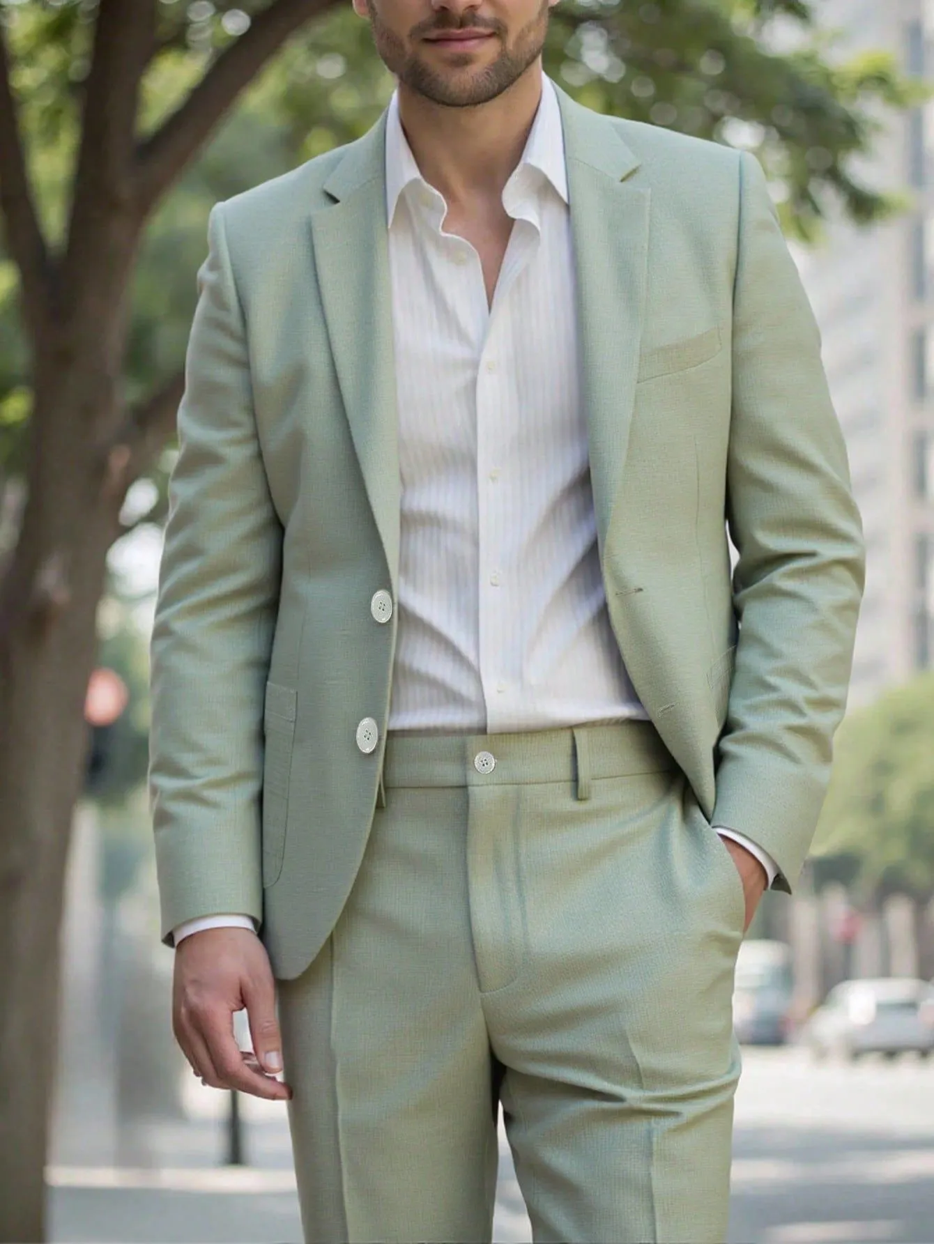 Mens Solid-Colored Business Suit Set
