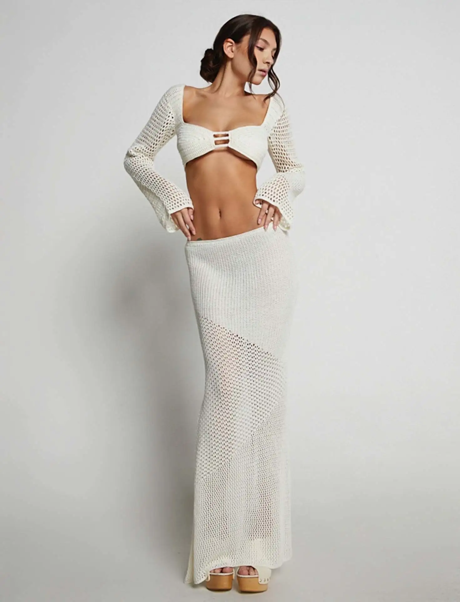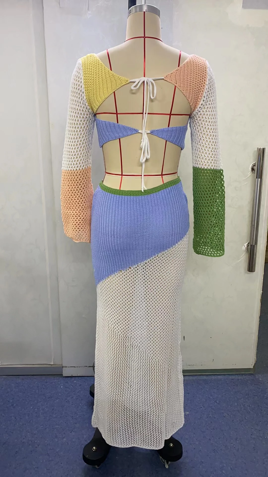 Women's New Lace-up Long Sleeve Narrow Casual Knitted Dress Suit
